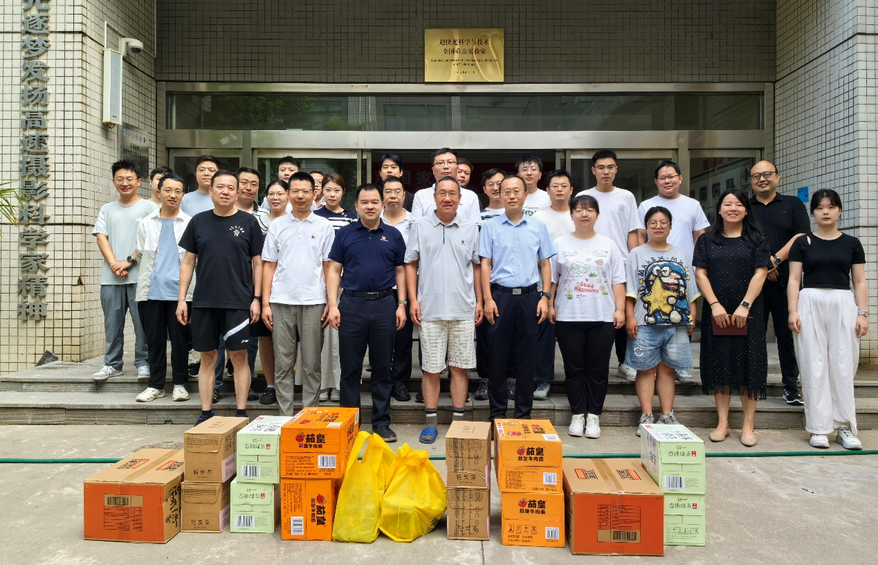 在研究所集中休假期間,為保障多項科研任務如期交付,我所部分科研團隊放棄休假,加班加點堅守在科研一線,奮戰在實驗室和外場。近日,黨委書記、副所長郝偉,副所長邵曉鵬帶領黨群工作處和所務辦公室部分同志深入科研一線開展高溫假期間慰問活動,代表所黨委和所工會向堅守崗位的加班職工送去涼茶、飲料、方便食品等,送去組織的關懷與問候。郝偉和邵曉鵬對科研人員不畏酷暑、堅守崗位的辛勤付出表示慰問和感謝,勉勵大家繼續發揚“西光精神”,確保國家重大科研任務高質量完成,同時叮囑團隊負責人合理安排作息,做好防暑降溫措施。
